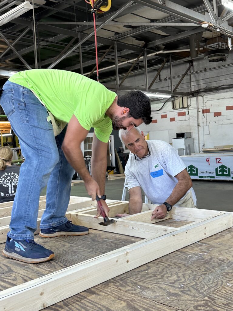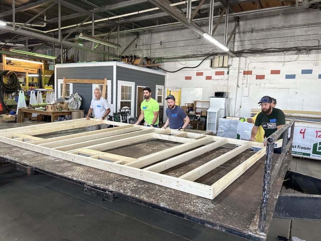 Estas ocho personas procedían de distintos departamentos y tenían habilidades diferentes, pero cada una de ellas pudo contribuir realmente al proyecto. Durante el día completaron todas las paredes interiores y exteriores de una casa en construcción.